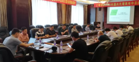 大会第一天,总经理刘杰对2021年上半年国内销售情况进行总结陈词,和各地经销商针对下半年工作内容进行了深入探讨。